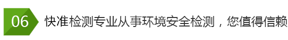 快準(zhǔn)環(huán)境檢測(cè)公司技術(shù)力量雄厚,有一套完整的檢測(cè)服務(wù)流程,公司注重服務(wù)質(zhì)量, 公司嚴(yán)把質(zhì)量關(guān)向社會(huì)承諾:檢測(cè)公正、科學(xué)、高效、準(zhǔn)確!空氣檢測(cè)、水質(zhì)檢 測(cè)、土壤固廢檢測(cè)、輻射放射檢測(cè)、噪聲振動(dòng)檢測(cè)、環(huán)保認(rèn)證檢測(cè)、裝修材料 檢測(cè)就找山東快準(zhǔn)環(huán)境檢測(cè)技術(shù)有限公司!